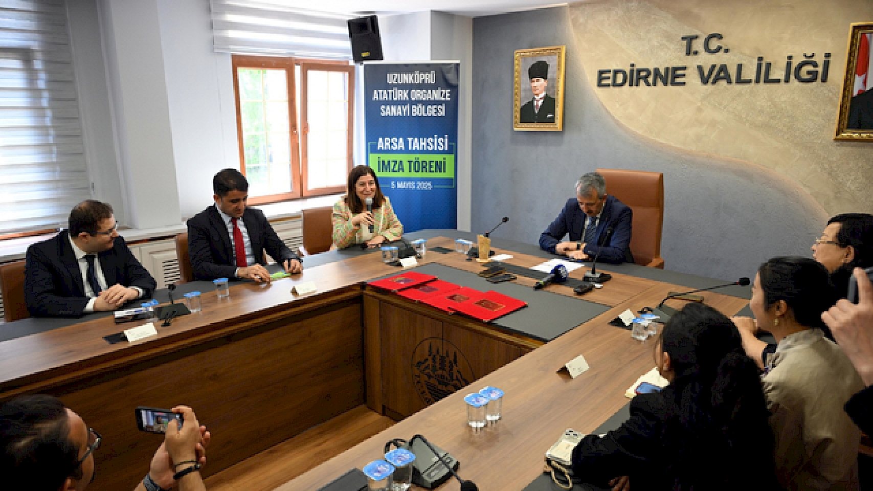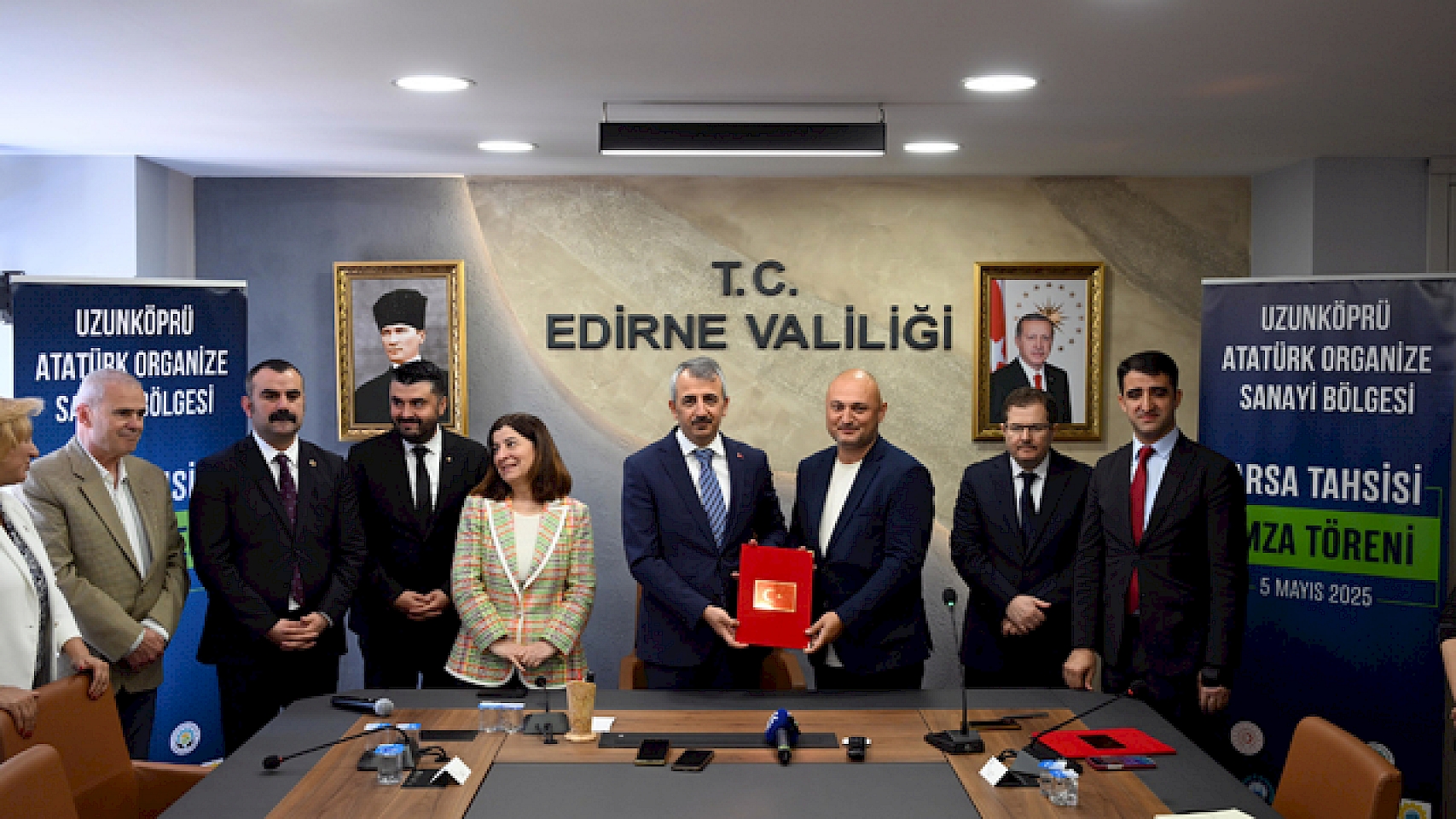 Uzunköprü'de hazırlık süreci tamamlanan, yarın altyapı ihalesi yapılacak Atatürk OSB için ilk tahsis sözleşmeleri imzalandı. İlçede toplam 1000 dönüm alana kurulacak OSB'de, aralarında bir Çin firmasının da bulunduğu 3 şirketle, Edirne Valiliği'nde imza töreni gerçekleştirildi. Törene Vali Yunus Sezer, AK Parti Edirne Milletvekili Fatma Aksal, Uzunköprü Kaymakamı Onur Kökçü, Uzunköprü Belediye Başkanı Ediz Martin ve firma temsilcileri katıldı.